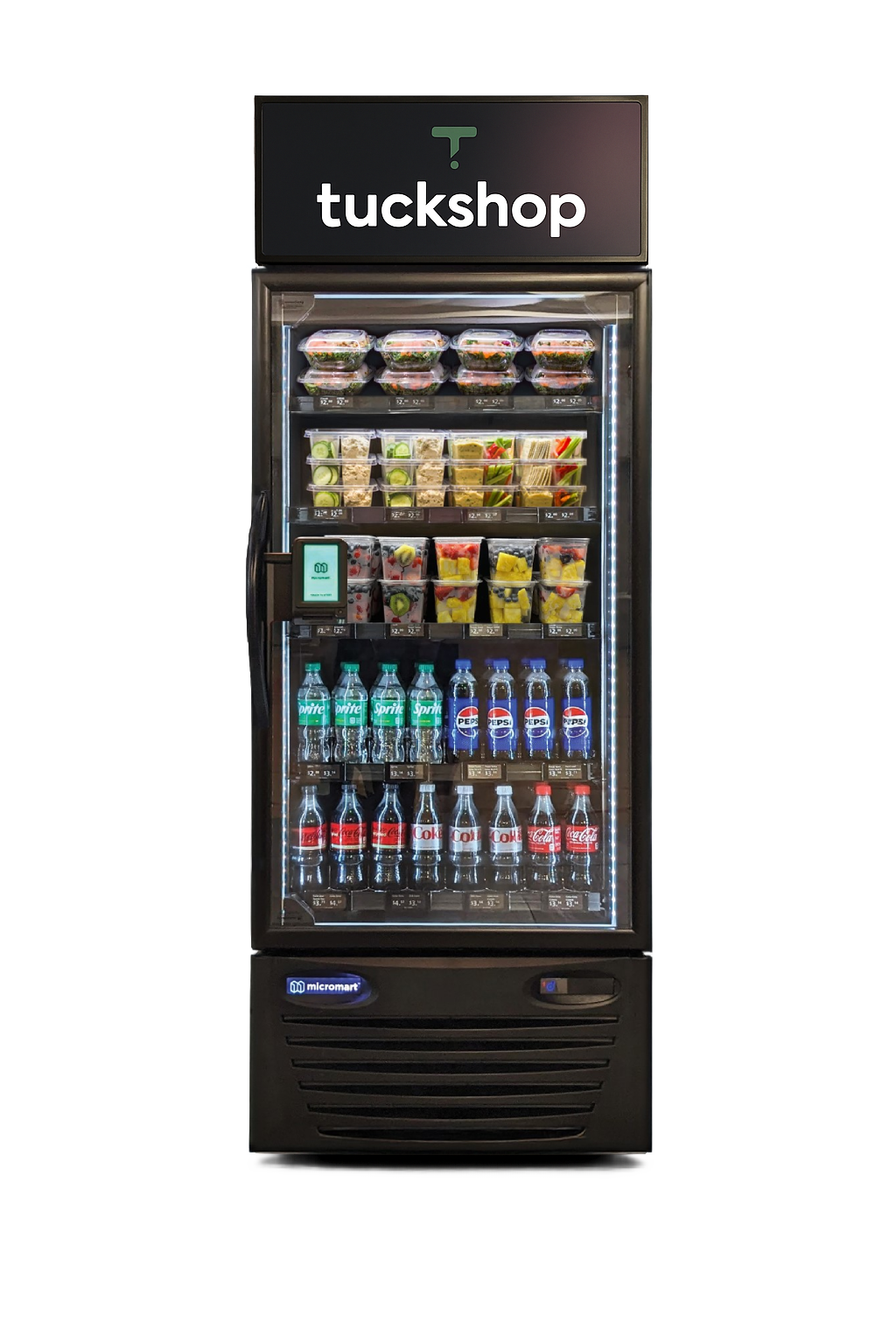Fresh food, drinks, and premium everyday essentials available 24/7 through Tuckshop’s luxury AI vending system - run for you with zero cost or management.